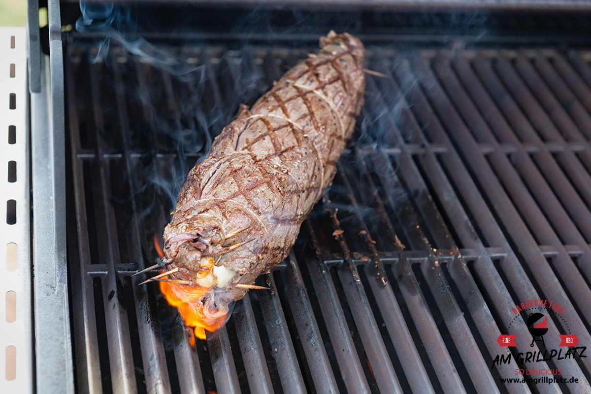 Flank Steak ist ja, wenn man es grillt, von alleine schon ein intensiver Genuss aber wenn man es noch lecker füllt und rollt, wird das Geschmackslevel nochmals um eine Stufe angehoben.