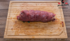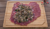 Jetzt wird das Flank Steak gefüllt. Dafür das Flank Steak mit der faserigen Seite auf das Brett legen.