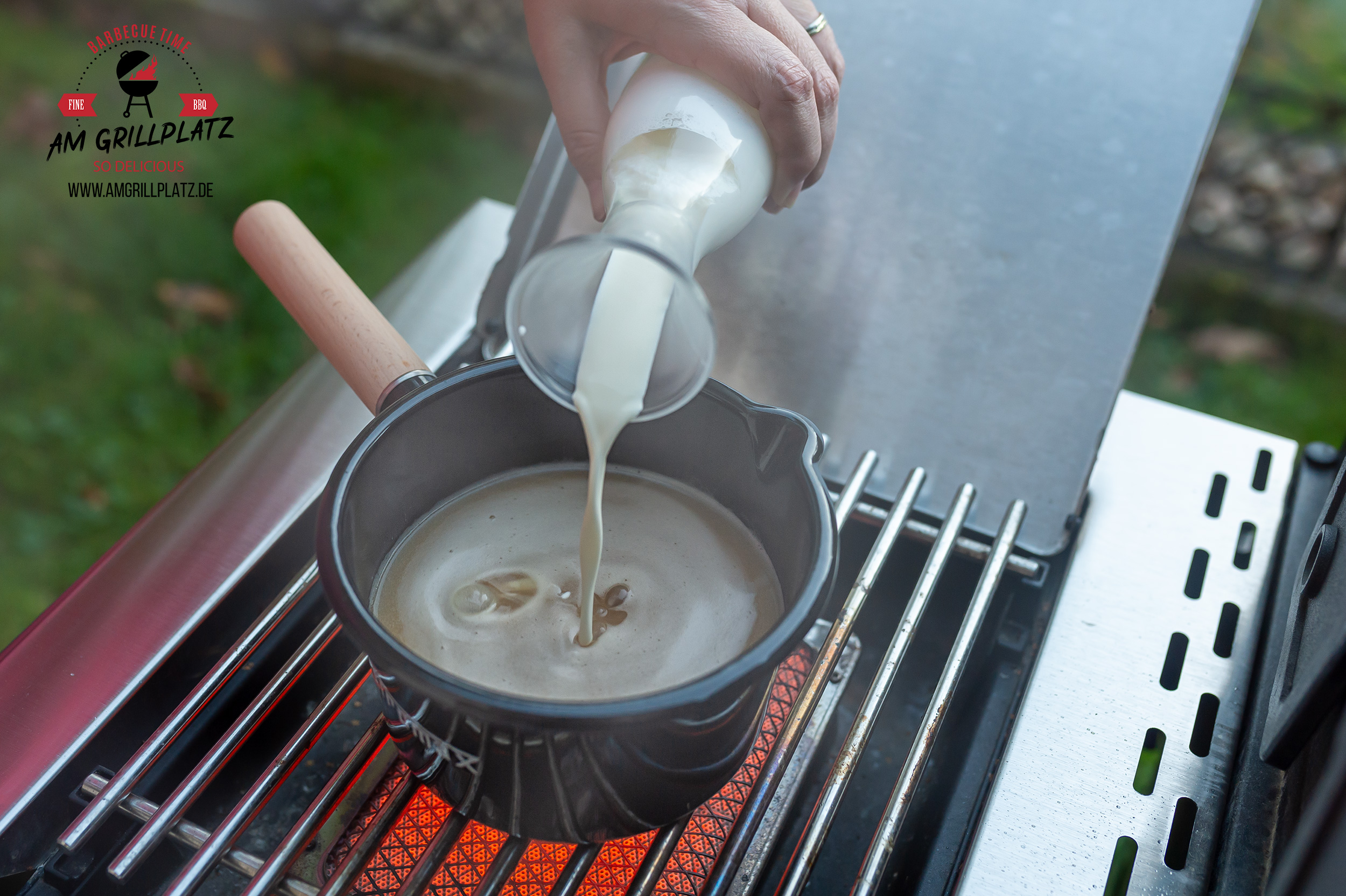 Am Ende den Topf einfach zum warmhalten in den Grill in den indirekten Bereich stellen.